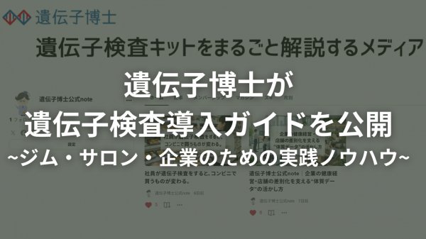 記事名:「ジム・サロンの差別化、企業の健康経営に!『遺伝子博士』が遺伝子検査導入ガイドを公開。すぐに使える実践的なノウハウをnoteで解説します。」
